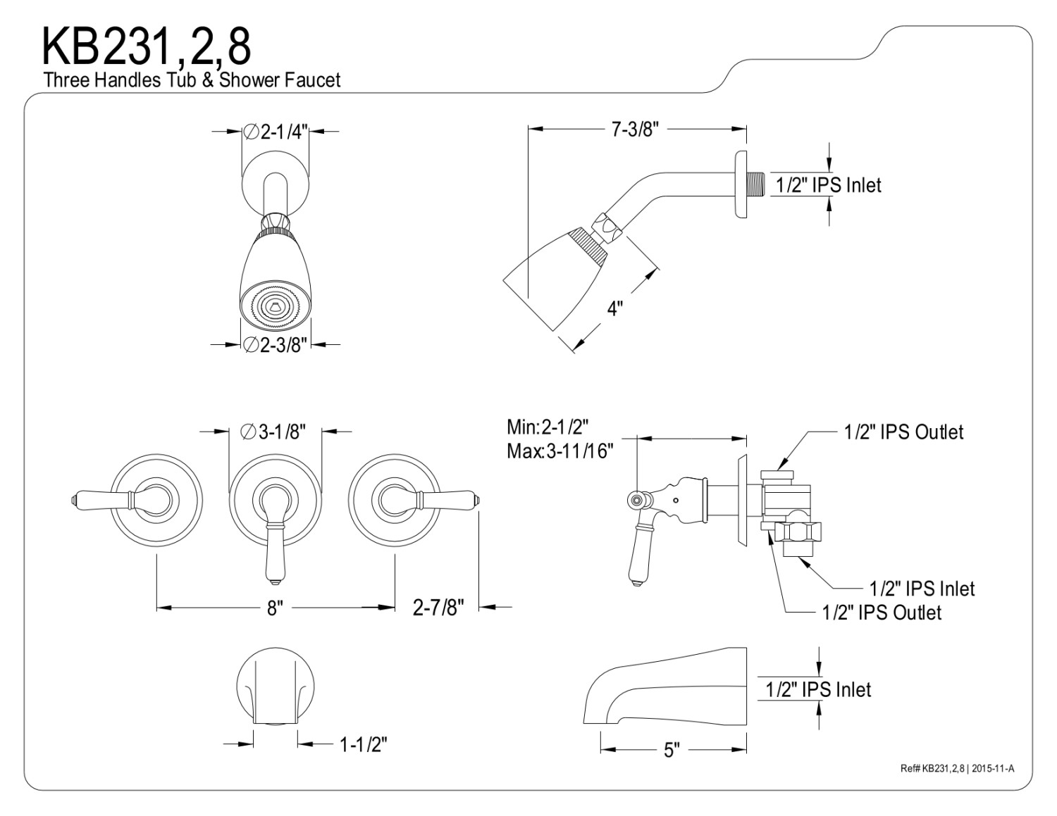 Kingston Brass Kb231pl Tub And Shower Faucet With 3 Porcelain Lever Handle Polished Chrome 5 Inch Spout Reach Bathtub And Showerhead Faucet Systems Amazon Com